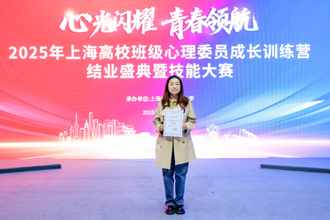 11月7日,由上海应用技术大学承办的2025年上海高校班级心理委员成长训练营结业盛典暨技能大赛圆满收官。来自全市50余所高校的90余名心理委员经过训练营考核,最终17名选手成功会师决赛。在这场激烈的角逐中,我校历史学系的王诗涵同学凭借扎实的心理学知识和出色的现场表现,在本次大赛中获得三等奖。我校荣获本次活动“优秀组织奖”。