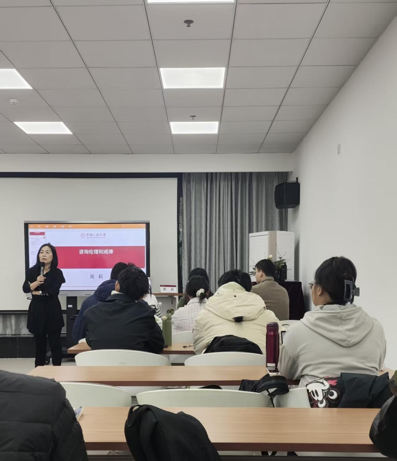 “阳光伙伴”训练营始终坚持“专业化培养、实践化导向”的理念。除系统课程外,项目于发展过程中创新设立了“朋辈谈话室”,为完成核心培训的优秀学员提供真实的倾听与支持实践平台。在这里,学员在专职心理咨询师的督导下,以一对一或小组形式,为前来求助的同学提供初步情绪支持、心理知识普及与资源转介服务。实践环节注重能力转化与反思成长。项目全程严格对标专业心理咨询伦理规范,所有朋辈服务均在专职教师督导下进行,确保服务的专业性、安全性及规范性,真正做到“支持而不越界,倾听而不替代”。与中国人民大学、复旦大学联合举办朋辈心理辅导技能培训,邀请中国人民大学周莉教授主讲。学员通过模拟谈话训练、个案讨论会、团体督导沙龙等形式,不断锤炼助人技能,增强对朋辈心理界限与伦理的理解。这种“学中做、做中督”的模式,不仅强化了朋辈谈话员的理论应用能力,也提升了他们的自我觉察与情绪管理能力,使朋辈心理服务成为一项既助人又育己的成长过程。