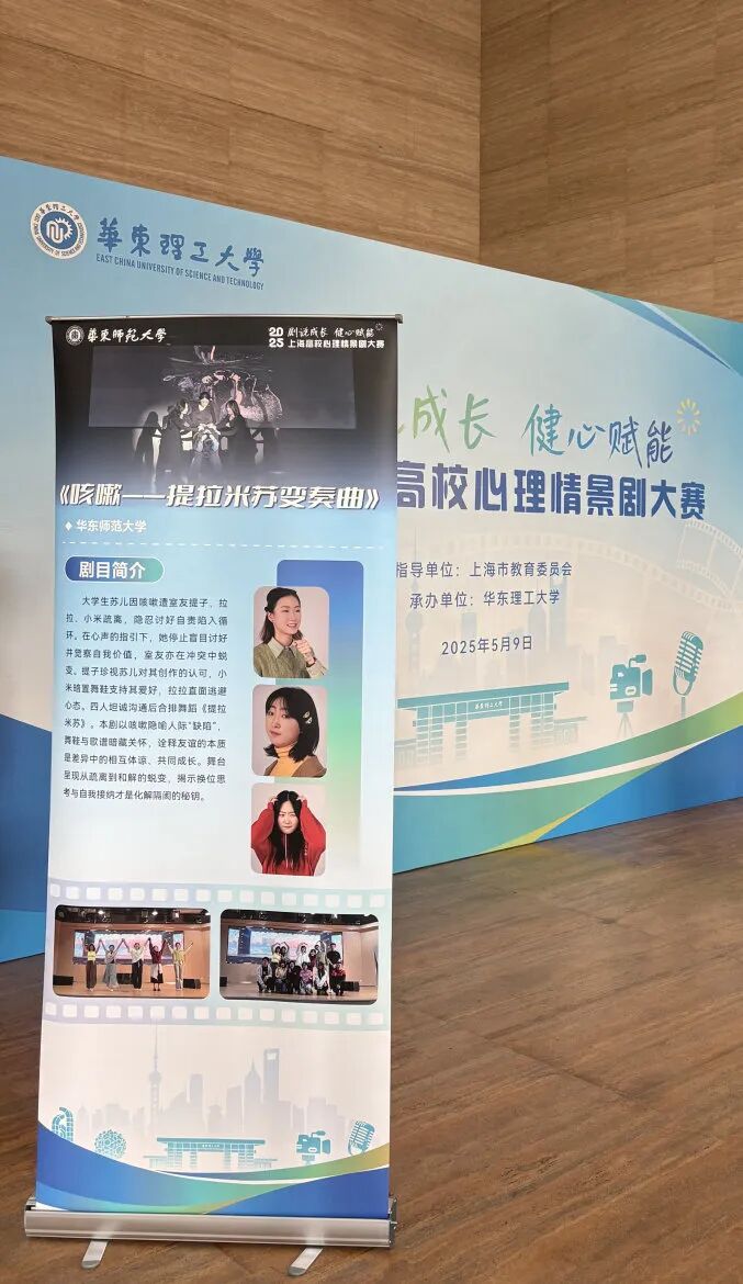 为全面加强和改进新时代学生心理健康工作,提升学生心理健康素养,促进学生身心健康、全面发展,2025年5月9日,由上海市教育委员会指导的2025年“剧说成长健心赋能”上海高校心理情景剧大赛决赛在华东理工大学奉贤校区大学生活动中心剧场举行,决赛吸引600余人参与。在这场汇聚上海40所高校精彩剧目的激烈角逐中,华东师范大学设计学院选送的剧目《咳嗽——提拉米苏变奏曲》脱颖而出,代表学校闯入决赛,并荣获上海市三等奖,彰显了华东师范大学在心理健康教育与艺术实践融合方面的卓越成果。