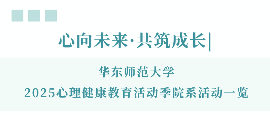 华东师范大学定于2025年4月至7月开展“心向未来·共筑成长”心理健康教育活动季,策划组织了一系列活动,提升同学们对心理健康的关注和心理健康水平。同时,各部院系分别结合自身特点,为同学们精心组织了各类活动。活动聚焦生命成长,加强人文关怀,旨在培育同学们自尊自信、理性平和、积极向上的健康心态。
